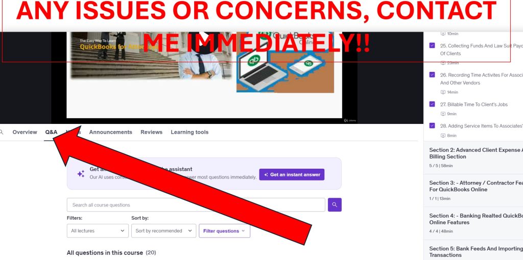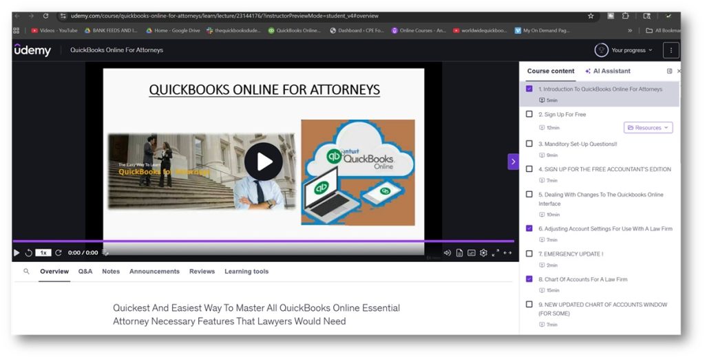 It takes 2 seconds to join (no form to fill out) and afer joining Udemy, click the link again or search in the search bar for “QUICKBOOKS ONLINE FOR ATTORNEYS”